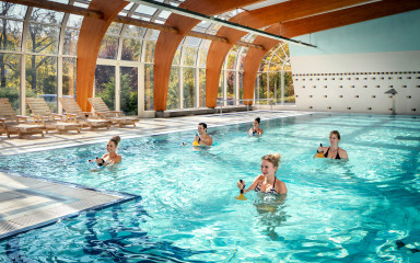 Swimming pool exercise and swimming provides an ideal combination foe those who want to improve their physical and emotional fitness. During this activity the body has to engage a number of muscular groups at the same time. The water supports the body’s weight and thus spares joints. As a result, the locomotor system is more involved and becomes stronger. This procedure also strengthens the cardiovascular system, provides ample blood supply the skin, fights orange peel skin, and helps to reduce weight. Moreover, the local water promotes better healing of muscles, tendons, bones and joints.